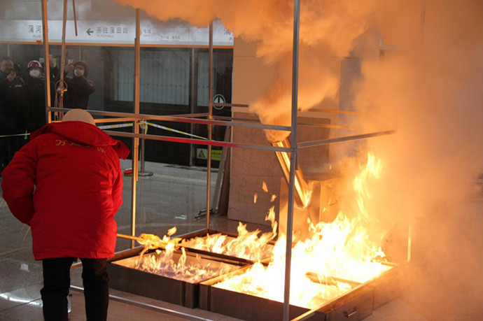 此次熱煙測試的地點(diǎn)為沈陽地鐵2號線北延線蒲河路站的站臺、站廳層及蒲蒲段區(qū)間隧道。在沈陽地鐵集團(tuán)有限公司、施工單位、設(shè)計(jì)單位及屬地消防部門等的共同見證下,檢測人員通過燃燒甲醇、煙餅等方式模擬不同規(guī)模的火災(zāi)場景,同時測試各風(fēng)口的風(fēng)速及溫度。經(jīng)過3個晚上的艱苦奮戰(zhàn),對地鐵車站內(nèi)火災(zāi)探測報警系統(tǒng)、通風(fēng)排煙系統(tǒng)、屏蔽門等多個系統(tǒng)的安全性、可靠性及穩(wěn)定性進(jìn)行檢測,以判定地鐵控制系統(tǒng)在突發(fā)火災(zāi)事故的情況下,能否安全及時疏散乘客。現(xiàn)場測試負(fù)責(zé)人表示,蒲河路站站內(nèi)火災(zāi)探測報警系統(tǒng)、通風(fēng)排煙系統(tǒng)、屏蔽門系統(tǒng)及電梯等多個系統(tǒng)運(yùn)行正常,各類傳感器監(jiān)測數(shù)據(jù)正常,實(shí)測排煙及補(bǔ)風(fēng)風(fēng)速合格,防火封堵符合要求,并現(xiàn)場宣布熱煙測試合格。同時,相關(guān)專家還根據(jù)現(xiàn)場測試情況,對車站通風(fēng)排煙模式、氣流組織方式及疏散方案提出了合理的措施和建議。