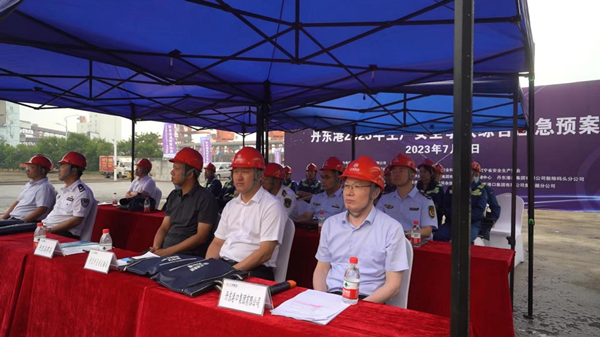 為貫徹落實《中華人民共和國安全生產法》、《中華人民共和國突發事件應對法》和《生產安全事故應急條例》等法律法規的有關要求,結合2023年安全生產月“人人講安全,個個會應急”的活動主題,7月4日上午,由沈陽萬益安全科技有限公司協辦的“丹東港2023年生產安全事故綜合應急預案演練”在丹東港口集團有限公司成功舉行。