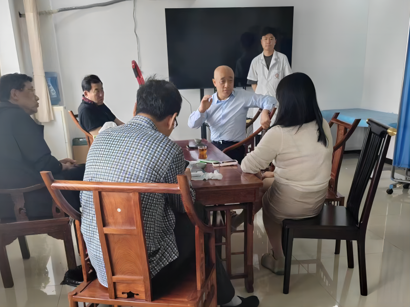 王煥彬董事長(右3)在和專家探討院內制劑可行性